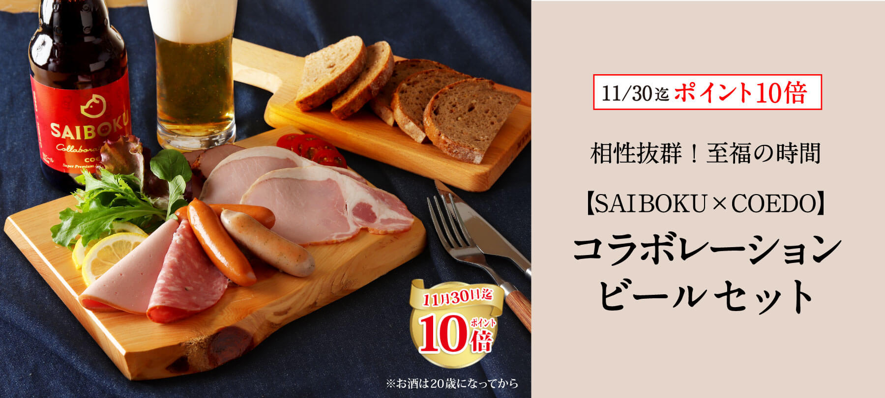 【SAIBOKU×COEDO】コラボレーションビールセット。 サイボク限定オリジナルビールと相性抜群ウインナーで、至福の時間をお贈りします。