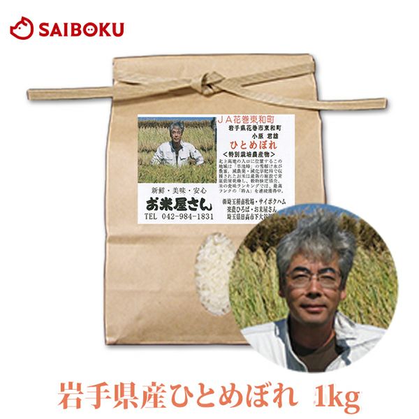 産直米 ひとめぼれ  岩手県産 1kg 米 当日精米 2025年産 特別栽培農産物