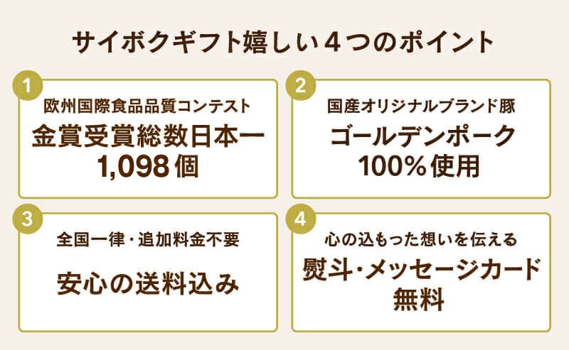 サイボクギフトは、金メダル多数受賞。ゴールデンポーク100%使用。送料込み。熨斗メッセージカード無料