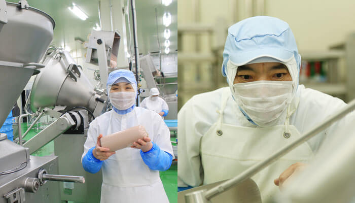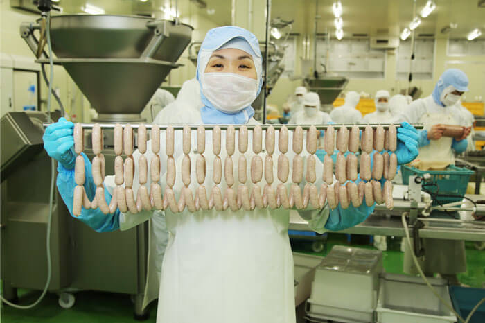 サイボクのハム・ソーセージはすべて、この直営工場で作られます。素材の品質を見極め、お肉本来の旨みを存分に引き出しながら丁寧に作りあげています。