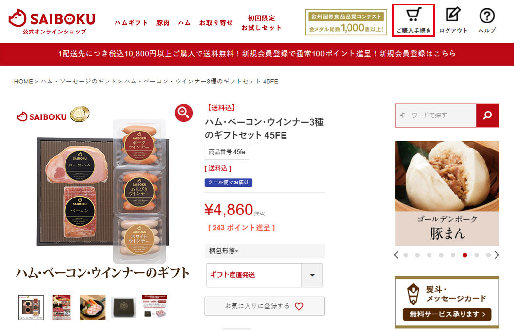 - サイト上部にある【ご購入手続き】のリンクからショッピングカートページへ移動します。