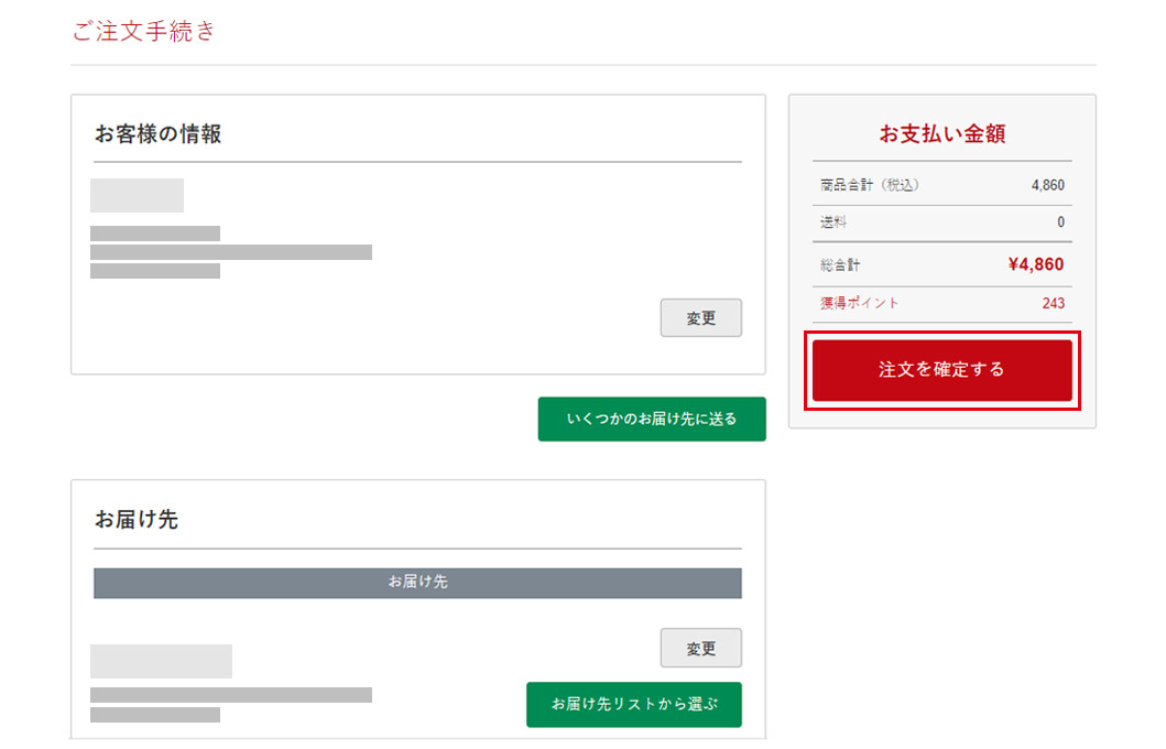 確認の上、【注文を確定する】ボタンを押せば、注文完了です。
