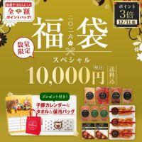 明けましておめでとうございます。 息子に勧められて初めて注文したのが、こちらの福袋セット¥10,000でした。届いてビックリのボリュームと美味しさに2度ビックリでした。ホームページを覗いた時には既に年内配送終了でした。来年に注文しようと思っているところに福袋のメールが届き、自分用と息子の家庭用と注文しました。息子にも喜んでもらえて嬉しかったです。
